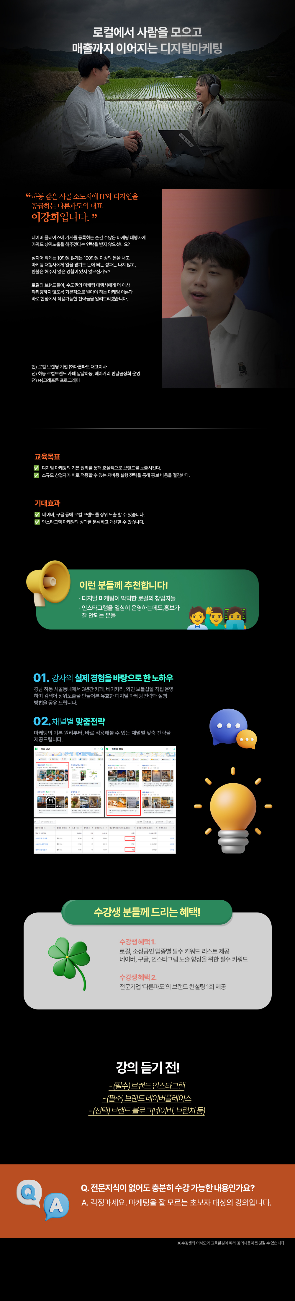 1강의 00:00~00:25 (25 min) | OT | - 오히려 로컬브랜드에서 성과가 크게 나는 마케팅 | 강의 | 없음 |